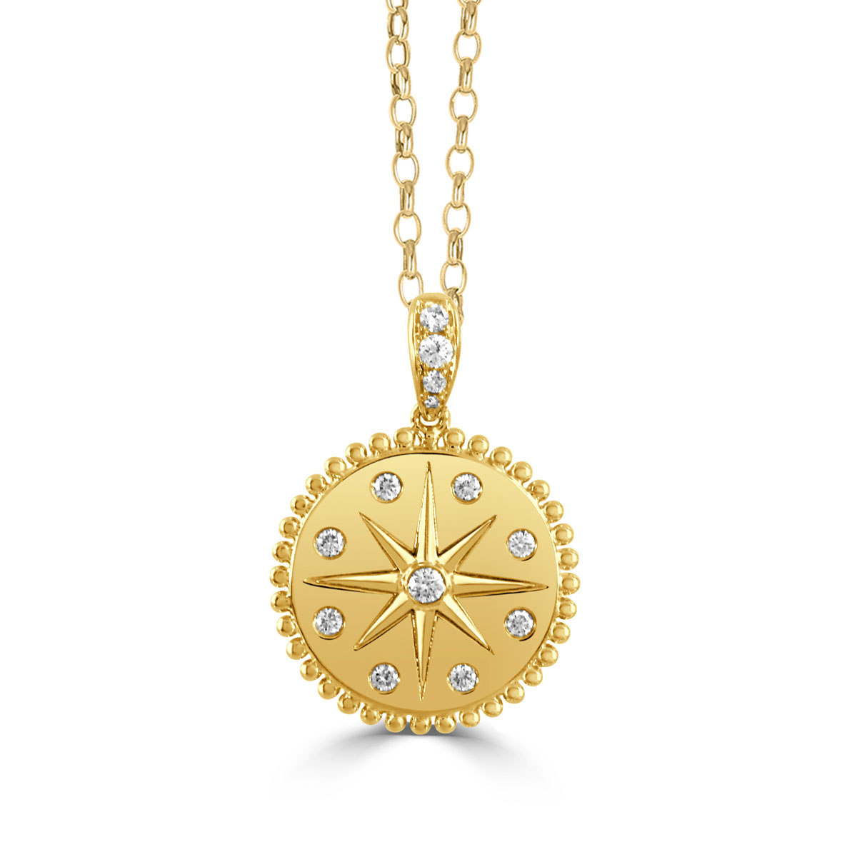 18K YELLOW GOLD DIAMOND MEDALLION PENDANT D13=.14